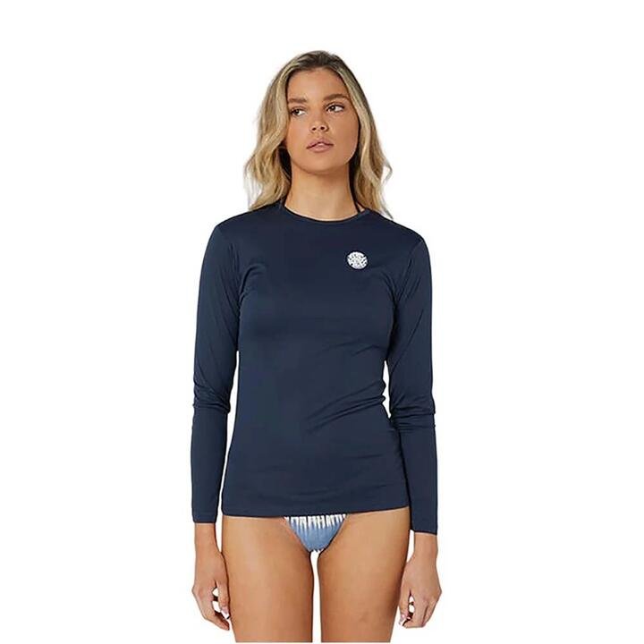 Rip Curl Whitewash Long Sleeve UV Womens Engineered using light weight poly elastane material to ensure limited resistance or drag in the water. Designed with a loose style fit to ensure comfortability both in and out of the water. The t-shirt style design provides the same range of motion as a regular t-shirt does but offers an increased level of protection.