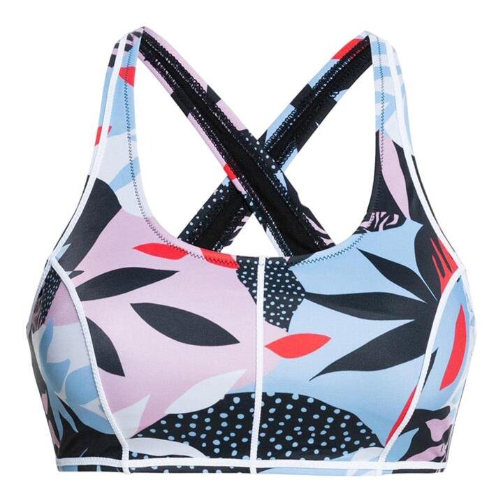 Roxy Fitness Printed Strappy Sports Bra Bikini Top Bikini top for women created from recycled high-performance Vita Xtra Life Lycra fabric, cut in a bra shape and finished with moderate coverage.