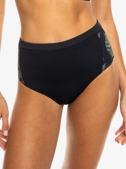 These ROXY Pro Wave High Waisted Bikini Bottoms deliver coverage you can count on, through pop-ups and wipeouts. Crafted from a soft, stretchy partially recycled nylon blend, these high-rise bottoms feature a wide elasticized belt for extra support, while the iconic ROXY branding a signature touch of surf-inspired flair. Featured here in the Anthracite The Palms Wetsuit colorway.