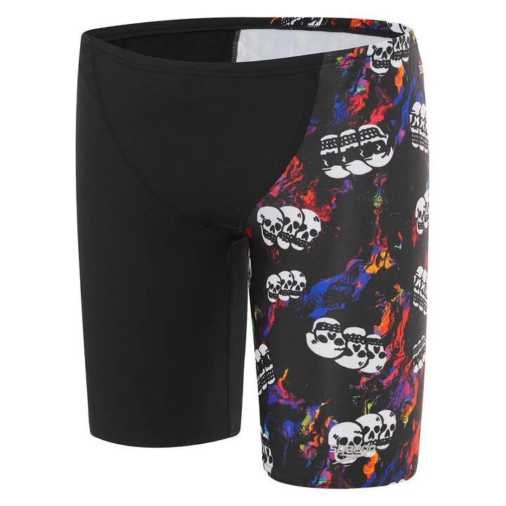 Tripple skull, for tripple the threat, we update our infamous skull graphic this season with firey muli colour base – always a best seller this jammer is ideal for 6-14 aged boys on our most durable fabric Endurance + Endurance + V Front construction – for enchanced comfort Secure Fit – internal drawcord allows you to adjust the fit Endurance + 100% chlorine resistance – for long lasting performance Quick dry – dries faster after your swim workout