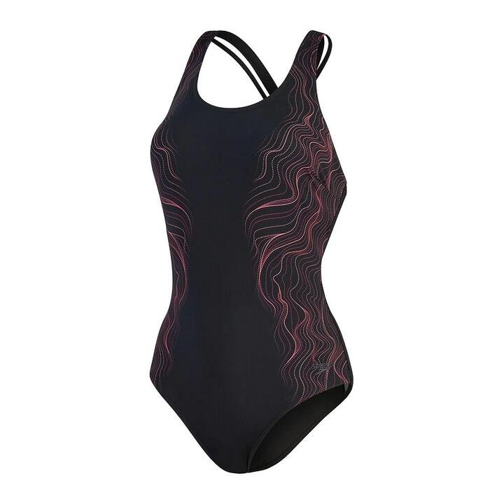 Speedo Calypso Shaping One Piece Womens Love your look with stylish shaping swimwear. Swim in style wearing our flattering black Calypso swimsuit, featuring a scooped neckline and a captivating side panel print in shades of red and pink. An attractive twisted back strap design with delicate rouleau detailing adds a feminine touch. Featuring exclusive lightweight shaping fabric with tummy control, it smooths and flatters in all the right places. Ideal for regular swimming and holidays, the suit includes bra pads and a hidden bust shelf liner for a supportive fit. Made from 100% pre-consumer waste fabric, our soft new ECO SHAPE COMPREX ULTRA fabric teams the best in shapewear innovation with the latest swimwear technology. Perfect for regular wear, it includes LYCRA® XTRA LIFE™, which is ultra-chlorine resistant and lasts twice as long as standard swimwear fabrics.