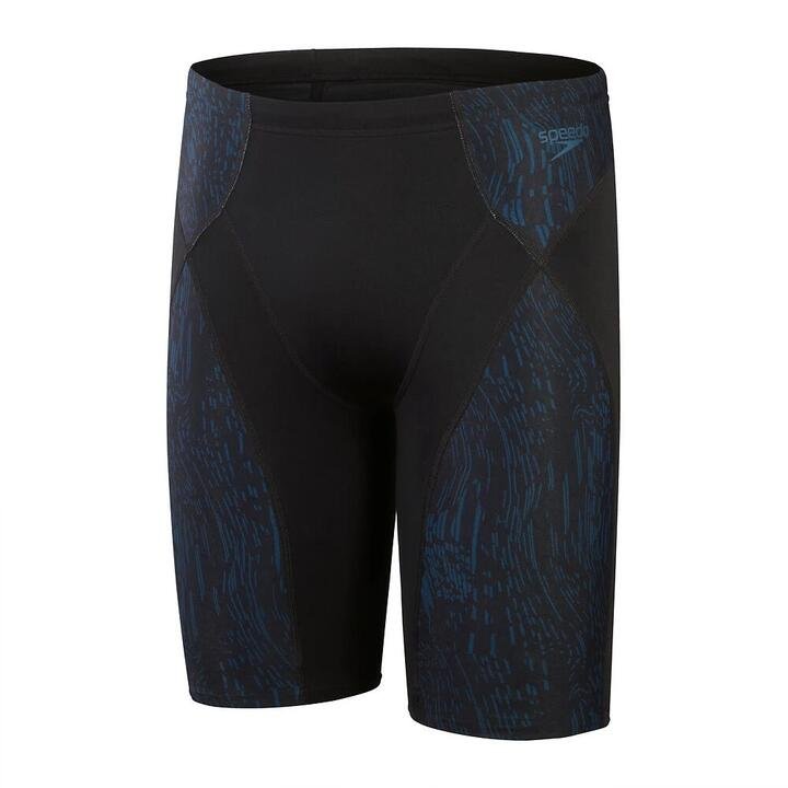 Speedo Eco End+ Max Compression Jammer Mens Performance swimwear. This sleek Endurance+ Max Compression Jammer is packed with technical innovations that help take your training to the next level. Striking in black with teal texture-effect graphic panels, it has a compressive fit for improved hydrodynamic efficiency and includes a silicone gripper waistband with flat drawstring. The V-cut design with rubberised liner ensures you feel supported and comfortable, while anti-microbial technology keeps the jammer fresh swim after swim. Designed to be durable, the jammer features our new Endurance+ MAX fabric, which is quick-drying and 100% chlorine resistant. In addition, both the polyester and PBT yarns in the fabric are made from 100% post-consumer waste, such as recycled plastic bottles.